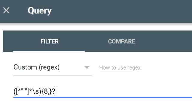 Play around with the number in the regex to find what works for your site. This tip won't work well for a new site or one not already getting a decent amount of traffic.